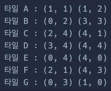 // 알파벳 대문자가 적인 타일의 좌표를 저장