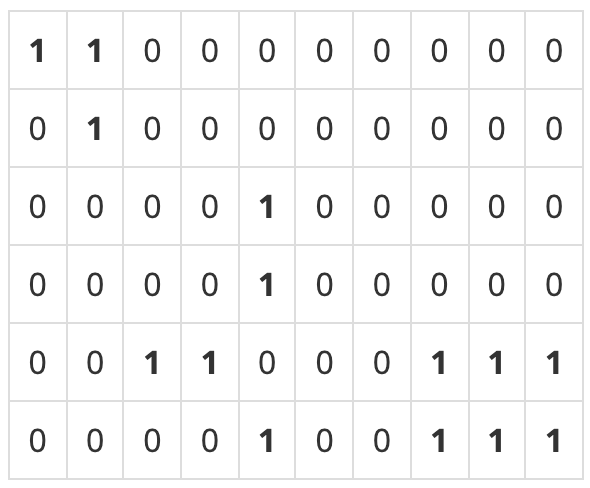 (0은 배추가 심어져 있지 않은 땅이고, 1은 배추가 심어져 있는 땅을 나타낸다.)