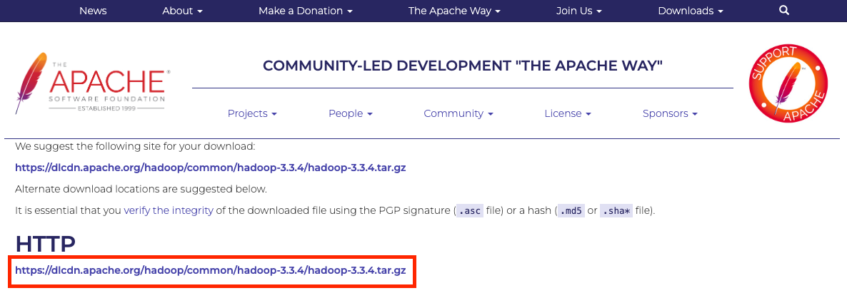 2. 하둡 배포 페이지에서 배포판 바이너리 다운로드