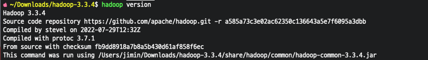 $ export HADOOP_HOME=/Users/jimin/Downloads/hadoop-3.3.4 # 하둡이 설치된 경로