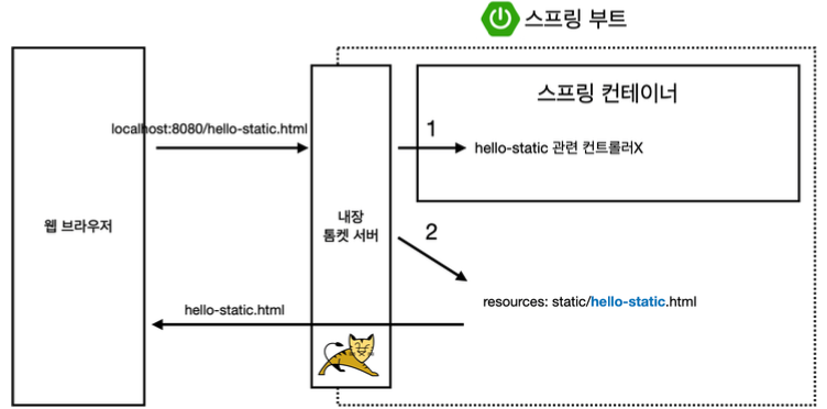 약속된 경로(ex. /resources/static)에 저장된 html 파일을 그대로 내려준다.